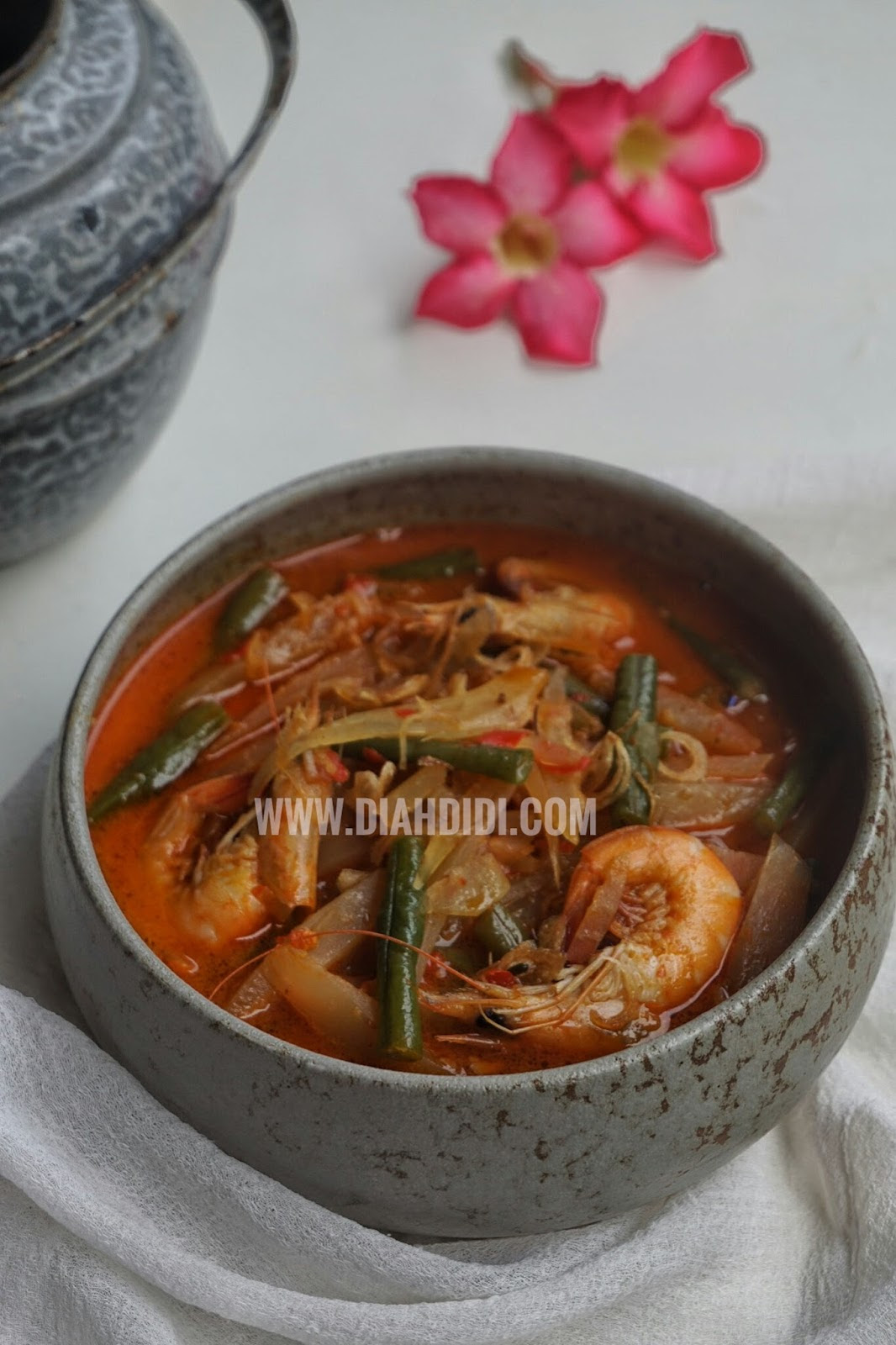 • Masukkan Pepaya muda dan kacang panjang, udang , tumis sampai sayuran layu