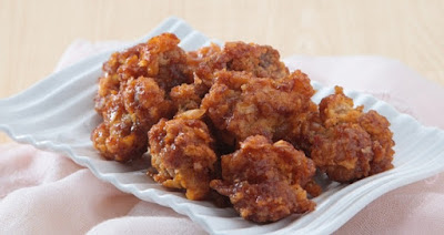 10. Susun ayam goreng tepung di wadah saji, siramkan saus tiram di atasnya, kuliner ini sudah siap disantap.