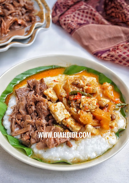 Resep Gudeg step by step sudah pernah aku share di SINI ya teman-teman. Sama sambel gorengnya dan Opornya juga. Tapi kemaren aku nggak bikin Opor sich, cuma Gudeg dan Sambel Goreng untuk makan Buburnya. Buburnya Bubur Nasi bersantan. Jadi sudah gurih juga rasanya. Di makan sama Gudeg yang lembut dan Sambel Goreng yang gurih pedes, enak sekali rasanya. Resep Buburnya biasa aja sich, aku masak pakai rice Cooker aja...cepat dan mudah.